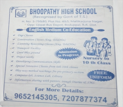 | Street | H.No.3-79&80, Plot No.4&5, Mallikarjuna Nagar, Opp:Uppal Bus Depot, Boduppal, Uppal-500039, Hyderabad, Telangana. |